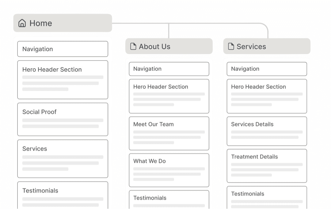 We outline all site pages and sections to get a clear idea of what the site will look like.